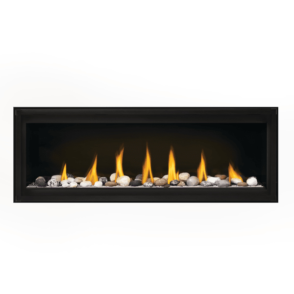 Napoleon’s Luxuria™ 50 linear gas fireplace provides an unobstructed view of the contemporary linear fire and requires no safety screen. The Premium Glass Guard system and Dynamic Heat Control provide safe heating and beautiful views to two rooms at once. Versatile installation opportunities allow for electronics and artwork to safely be displayed above the fireplace while combustible materials are installed flush to the opening. Include premium media options like Nickel Stix, Mineral Rock Kit, Shore, and Beach Fire Media Kits, multiple colours of Glass Ember Media and Glass Beads to embellish your personal style. Control every aspect of this fireplace easily from your favorite mobile device using the eFIRE app, including setting the mood with the multi-coloured LED ember bed. With the Luxuria™ fireplace, there are endless installation opportunities.