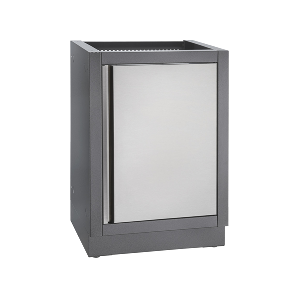 Never be on the wrong side of the door thanks to the OASIS™ Universal Cabinet with Reversible Door. A great addition to the outdoor kitchen, this OASIS™ Universal Cabinet with Reversible Door provides much needed storage for your Napoleon grilling accessories. This carbon colored, powder coated, galvanneal cabinet features increased durability from the two-coat pebbling, finishing system. Installation is a breeze with knockouts for gas and electrical. Levelling feet ensure a balanced surface, even if your patio isn’t perfectly level. Add this cabinet to the perfect outdoor kitchen OASIS™, along with your choice of grill head and under grill cabinet. *Countertop not included.